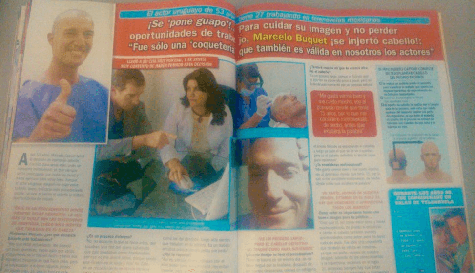 Reportaje aparecido en TVNotas sobre el microinjerto de cabello de Marcelo Buquet en Eikona & Styl.